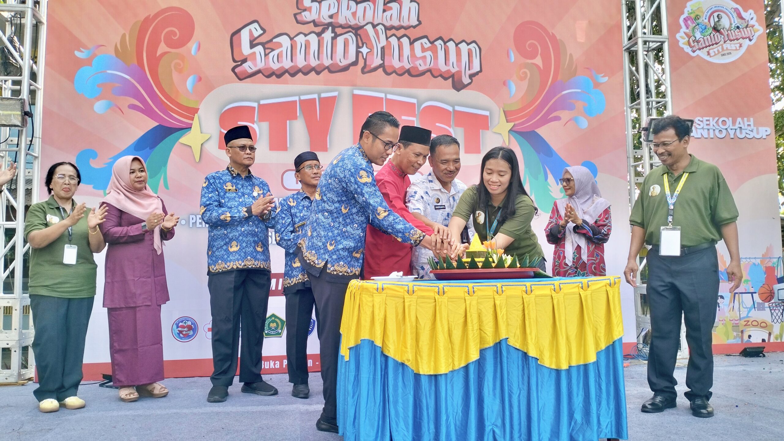 Prosesi Potong Tumpeng Peringati Ulang Tahun Pelindung Sekolah Santo Yusup yang dilaksanakan di lokasi sekolah di Jalan Bukit Sidomulyo II,…