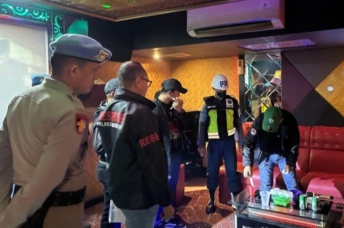 Pelapor Ami Bagan (tengah kiri) dan Terlapor Tengku Wahyu (tengah kanan), didampingi Kanit Reskrim Polsek Tebing Ipda Om Kenedi (ujung…