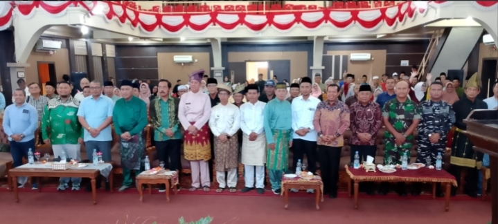 (Bupati Karimun Iskandarsyah didampingi Wakil Bupati Kabupaten Meranti, Muzamil Baharudin membacakan Naskah Pelantikan KKB Meranti Kabupaten Karimun periode 2025 – 2030)
