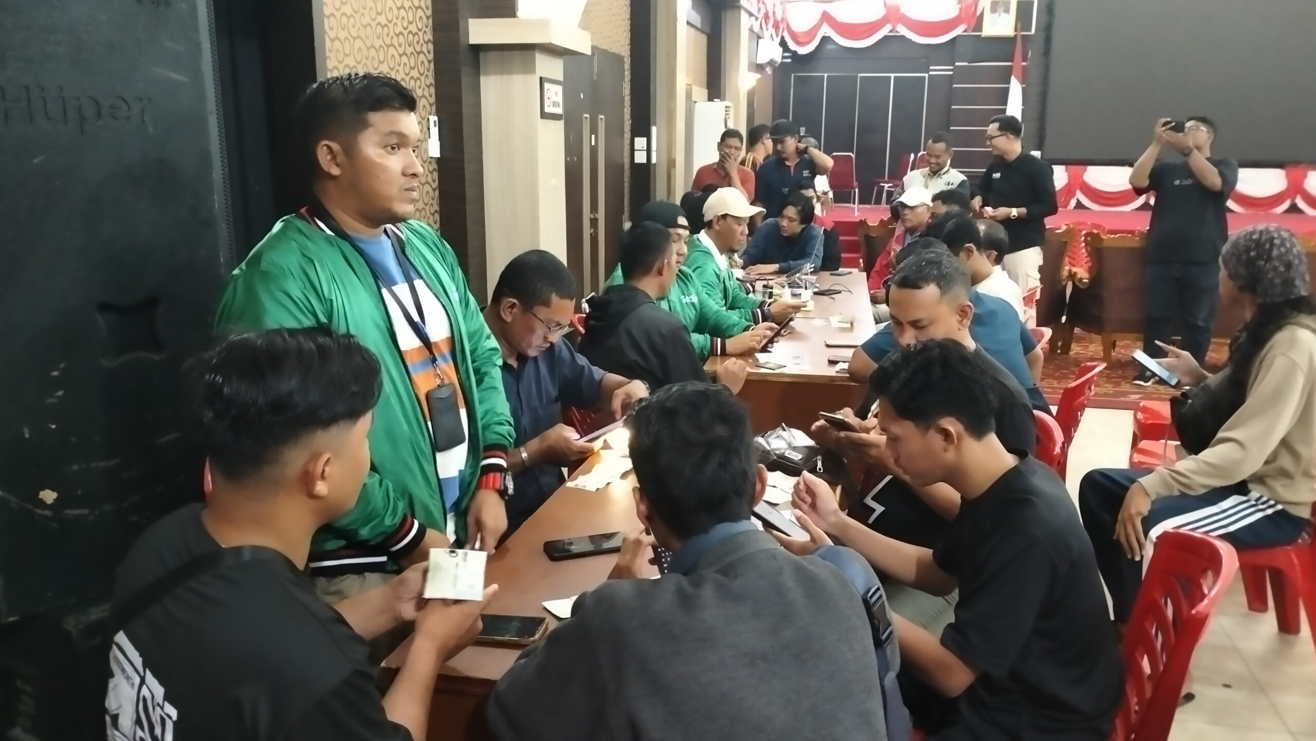 Koordinator Grab Karimun, Fadli saat meninjau jalannya proses pendaftaran driver Grab di Gedung Nasional, Tanjung Balai Karimun. Selasa (2/12/2025). Foto : Ery