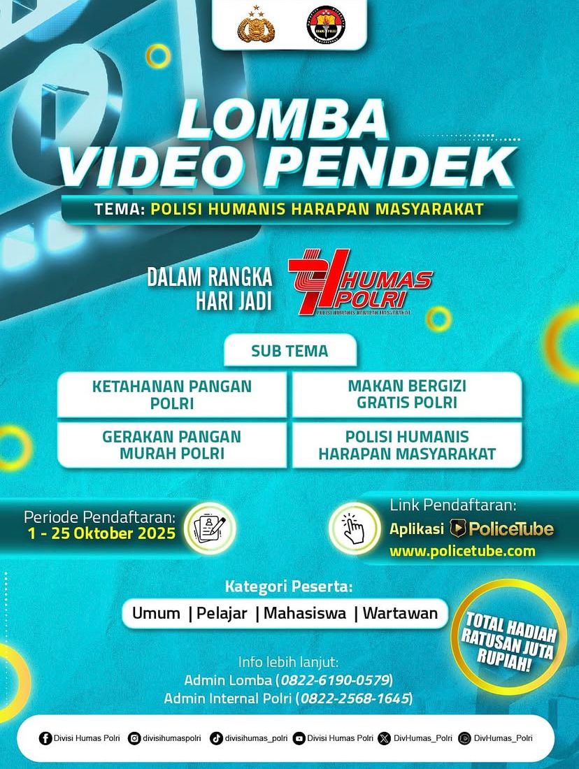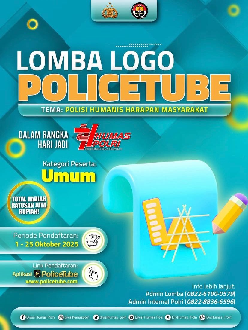 Pendaftaran : 1–25 Oktober 2025 melalui aplikasi PoliceTube atau website www.policetube.com