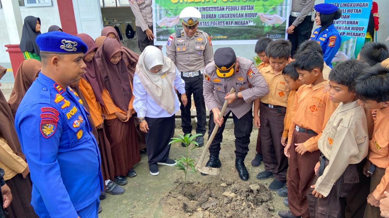 Meranti, Hbabe.id – Dalam upaya menumbuhkan kesadaran cinta lingkungan sejak dini, Polres Kepulauan Meranti melaksanakan kegiatan Green Policing berupa sosialisasi dan penanaman pohon di SDN 017 Alahair, Kecamatan Tebingtinggi, Kabupaten Kepulauan Meranti, Rabu (15/10/2025) pagi.