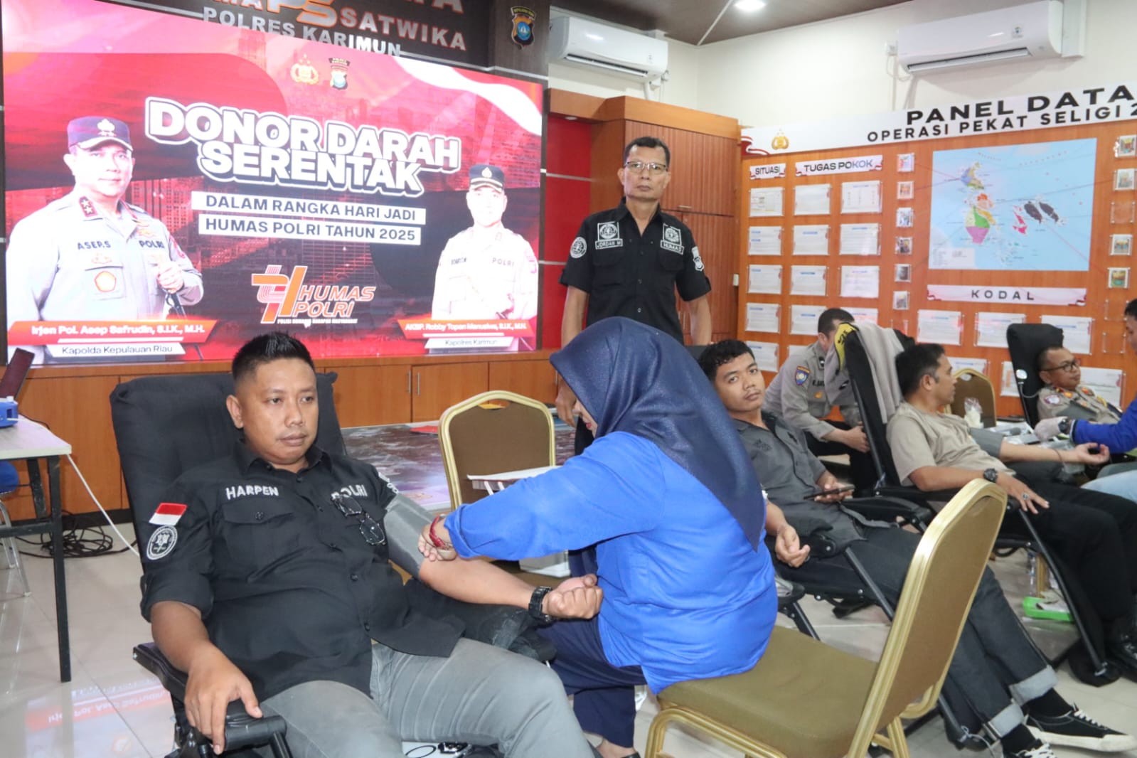 Karimun, Hbabe.id – Dalam rangka memperingati Hari Jadi Humas Polri ke-74 Tahun 2025, Polres Karimun melaksanakan kegiatan Donor Darah Serentak dengan tema “Setetes Darah Untuk Sejuta Harapan”, bertempat di Mapolres Karimun, Rabu (22/10/2025).