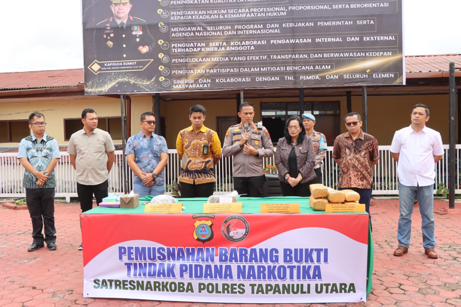 Pemusnahan tersebut dilakukan di halaman mapolres Taput, pada Jum’at (12/9/2025) di hadiri Kapolres Tapanuli Utara AKBP Ernis Sitinjak, didampingi Kasat Res Narkoba AKP Philip Antonio Purba.