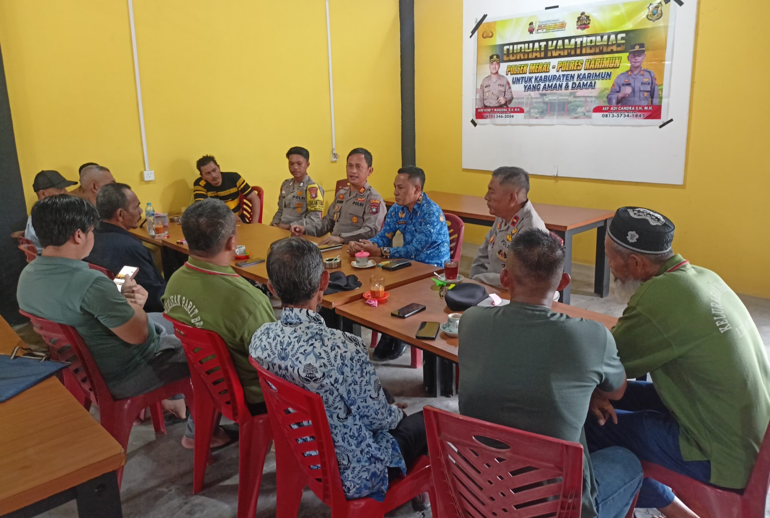 Kapolsek Meral, AKP Adi Candra, menghadiri Curhat Kamtibmas bersama masyarakat Parit Benut. Rabu, (17/09/2025).