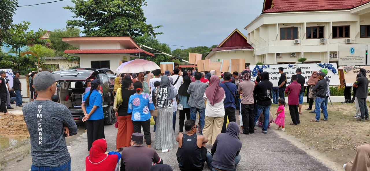 Aksi unjuk rasa ini berawal dari putusan PN Kabupaten Karimun pada 4 Agustus 2025 lalu yang menyuruh masyarakat (tergugat) untuk segera mengosongkan lahan dengan membongkar sendiri bangunannya.